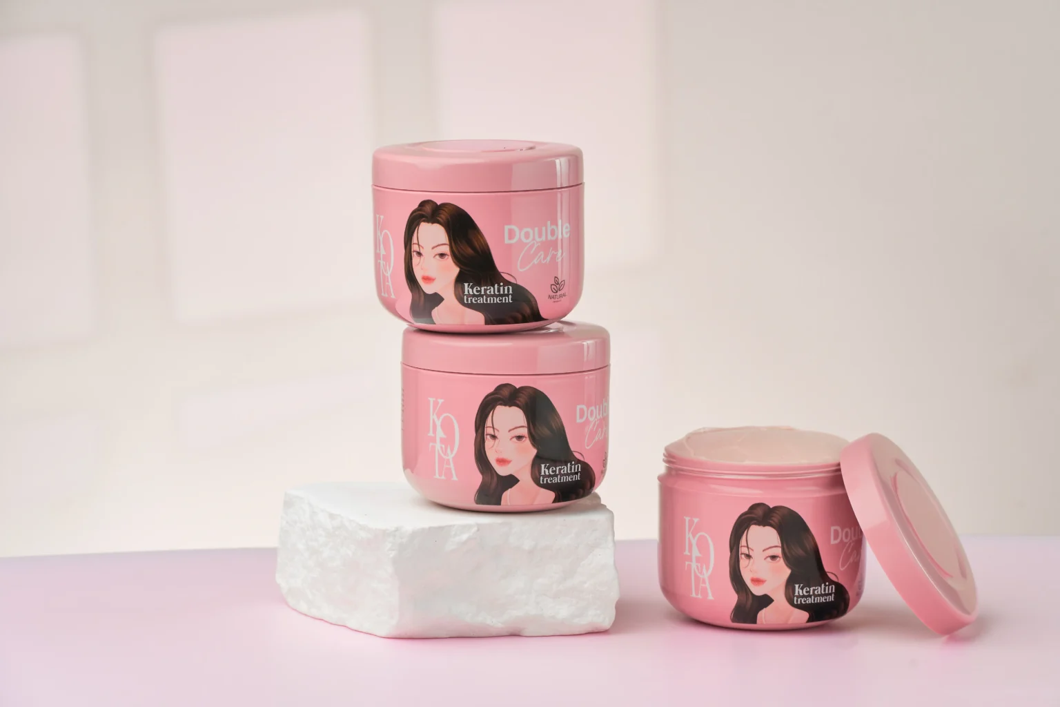 Kota Cosmetics Keratin Treatment Double Care 250ml Menyuburkan rambut dengan Keratin, Biotin dan Peptida Tembaga untuk menguatkan rambut. Diperkaya dengan ekstrak semula jadi berkualiti Baicapil, inovasi gabungan 3 tumbuhan iaitu ekstrak akar Scutellaria, pucuk kacang soya dan gandum, serta Anagain yang diekstrak daripada pucuk kacang pis, membantu merangsang pertumbuhan rambut, mengurangkan keguguran rambut dan meningkatkan ketebalan rambut dengan berkesan. Mengandungi minyak Argan organik dan vitamin B5 untuk melembapkan rambut dan kulit kepala, menjadikan rambut lembut, licin dan berkilau.